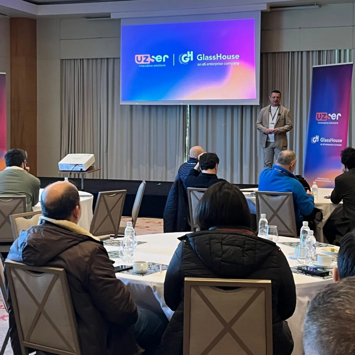 "Uzser Teknoloji & GlassHouse İş Birliğiyle HR Süreçlerinde Bulut Dönüşümü" başlığı ile Wyndham Grand İzmir’de gerçekleştirdiğimiz etkinlikte, Uzser Teknoloji ile birlikte İK süreçlerinin dijital geleceğini ve bulut altyapı stratejilerini ele aldık. Etkinliğin açılış konuşmasını Uzser Teknoloji İş Geliştirme Müdürü Özgür Doğan gerçekleştirdi.